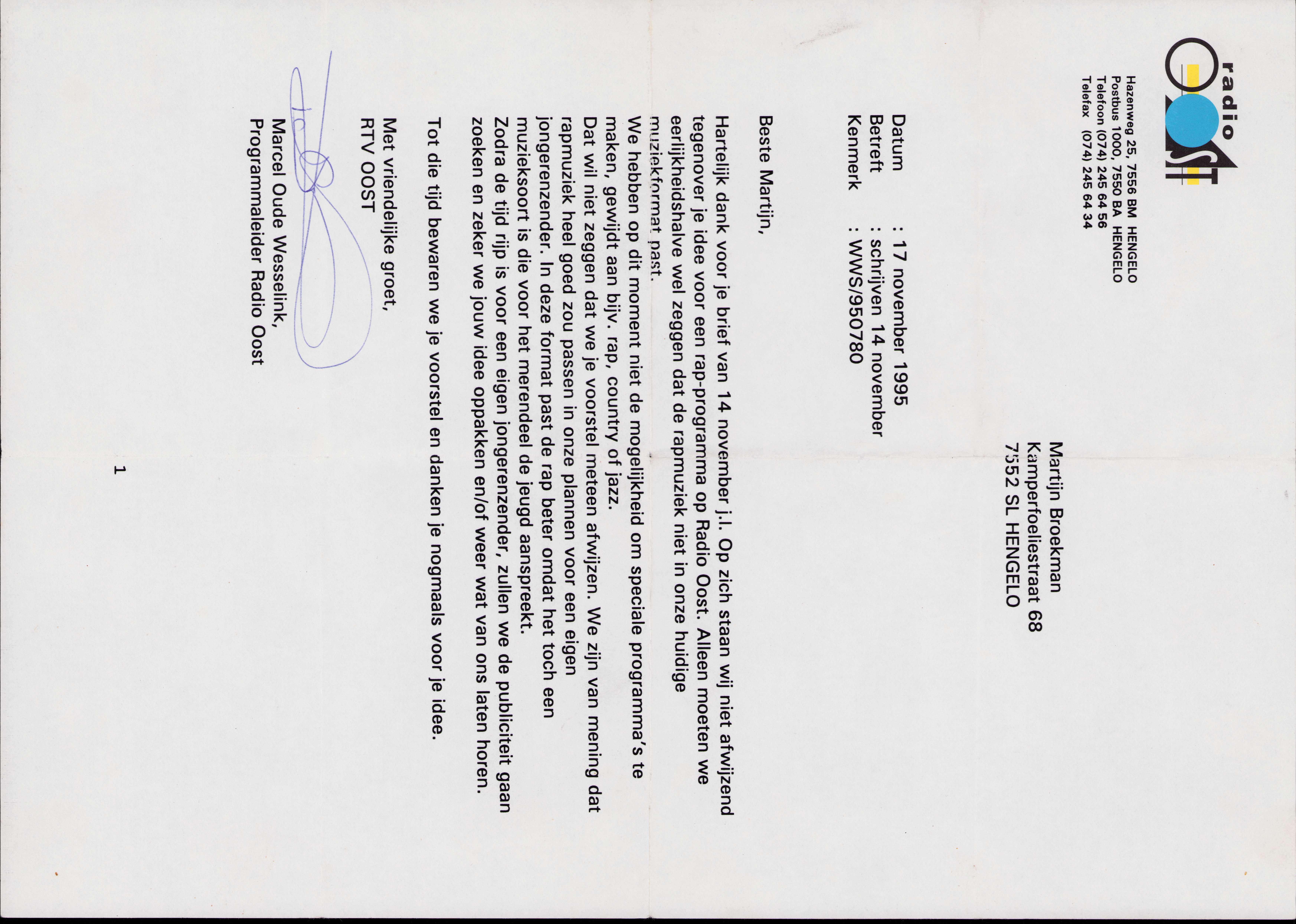 Afwijsbrief RTVOost