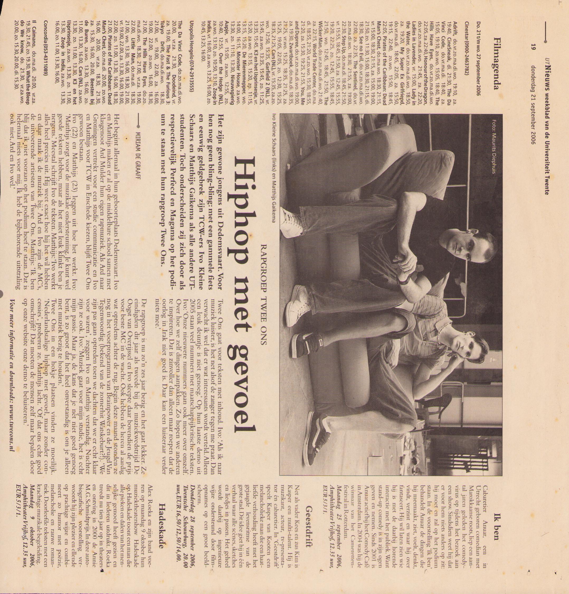 Rapgroep Twee Ons Hiphop met gevoel
